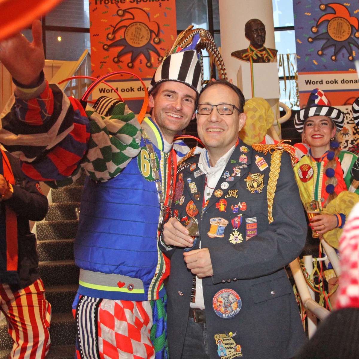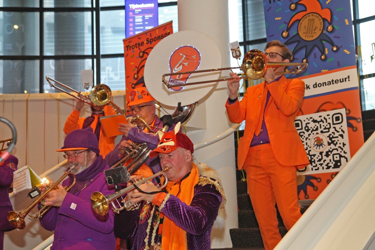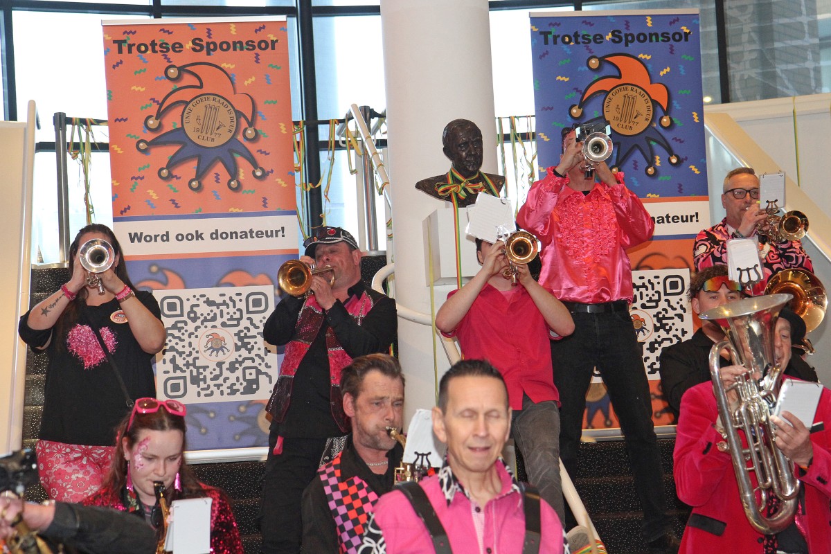 Het was weer een zeer drukbezochte middag, dé zaterdagmiddag van de Club 111, met veel bekende gasten, diverse optredens, hapjes, drankjes, enz. En natuurlijk de uitreiking van de bekende halve maantjes, in diverse gradaties, voor de (zeer) trouwe donateurs, waaronder veel bekenden (zie de foto's). Gevolgd door het inmiddels traditionele optreden van de Bloopers uit Dordrecht, in hun splinternieuwe outfit.